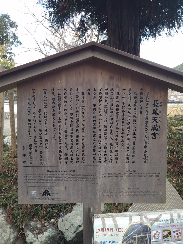 長尾天満宮は京都市伏見区醍醐伽藍町・下醍醐の金堂の北東丘陵に位置し、菅原道真公の死後(903年)、墓(衣裳塚)が築かれ、949年に勧請されました。