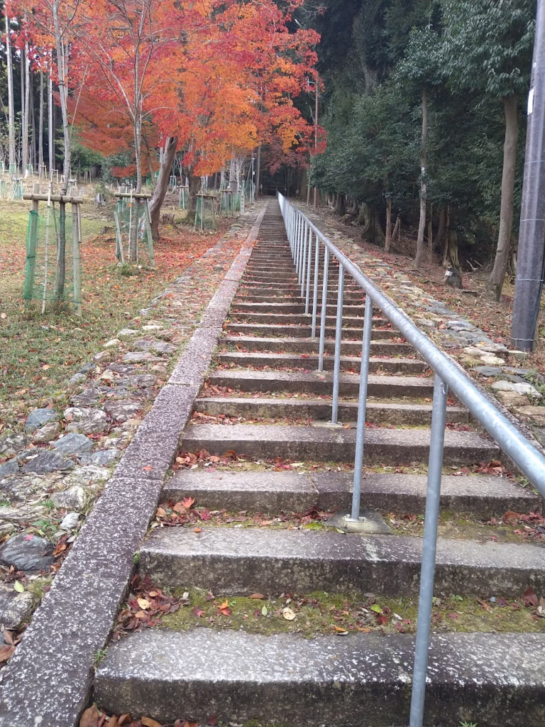 ここから長い階段があります。手すりもあって緩やかな階段です。高齢者の方も何人も登っておられました。