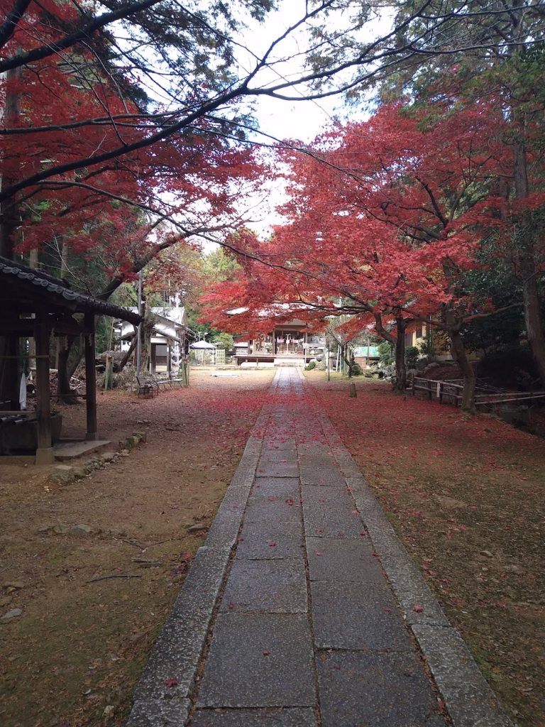 大きな神社だと早めに落ち葉が掃かれてしまうけど、残ってるとこんなにも雰囲気のいい参道になるんですね。