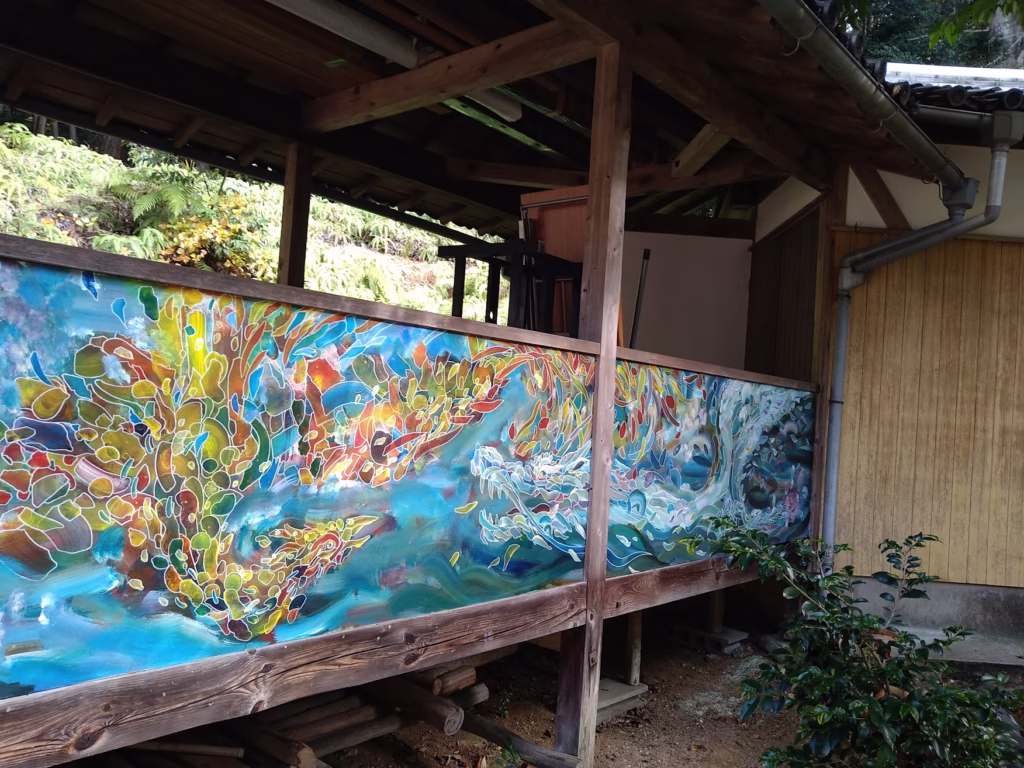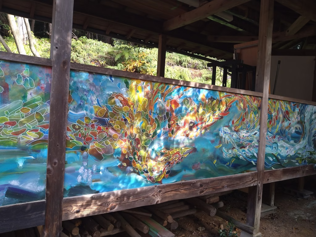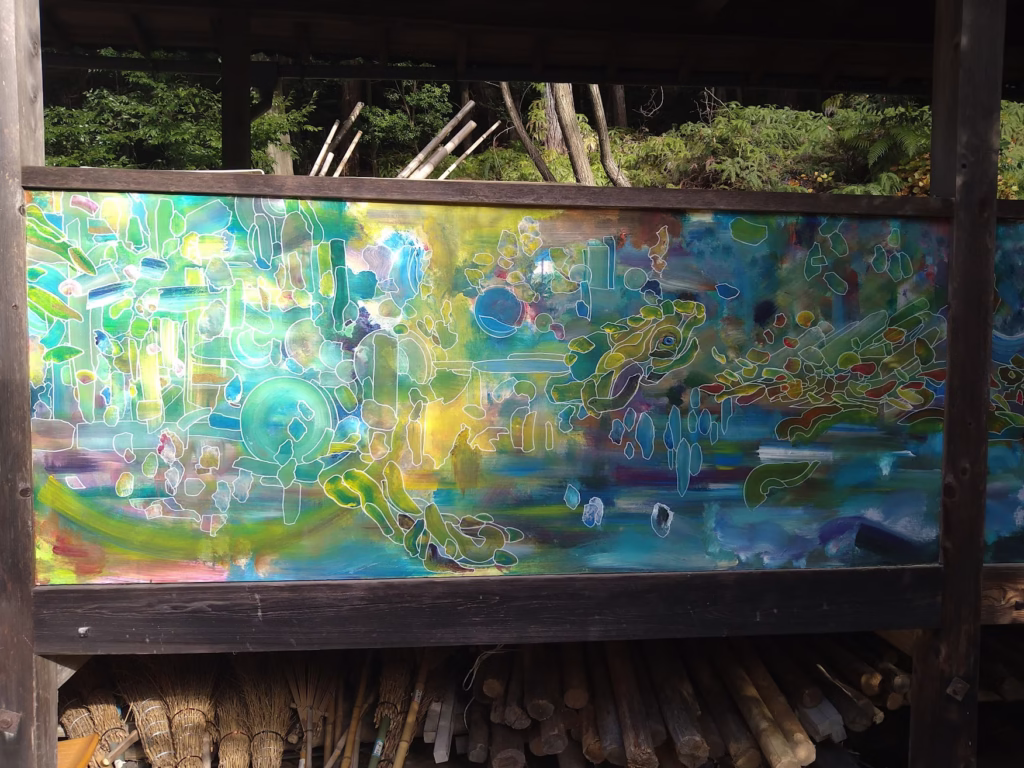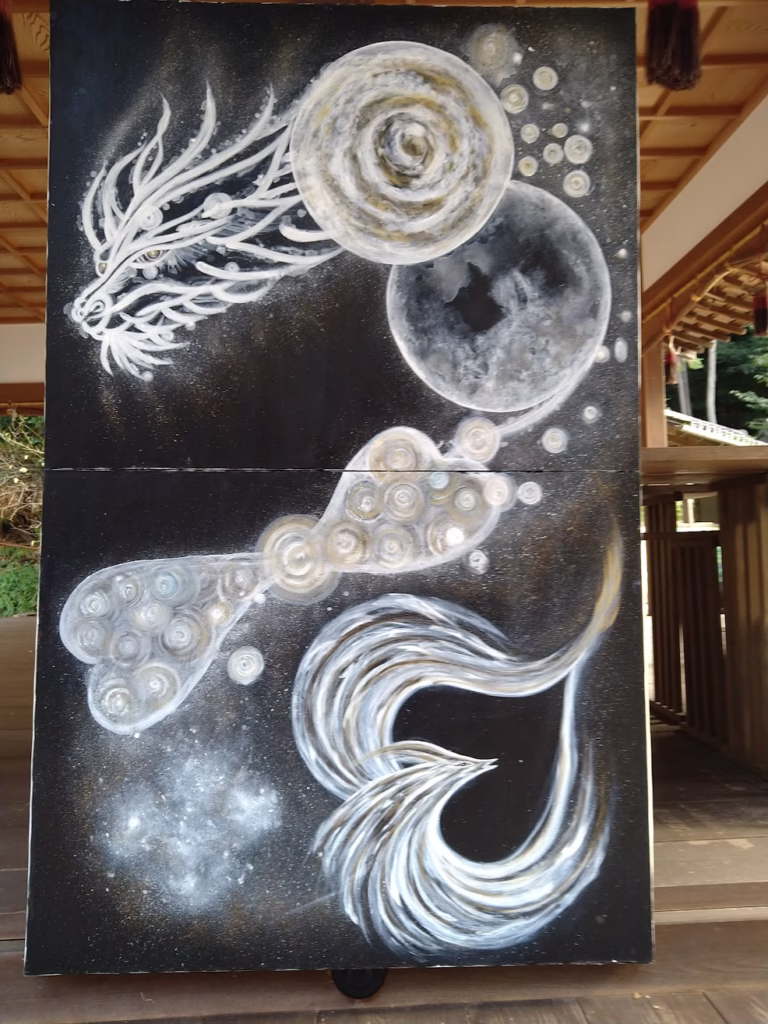 拝殿にある大阪の画家の橘ナオキさんが奉納された【悠久之歌】が素敵です。