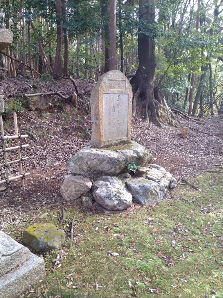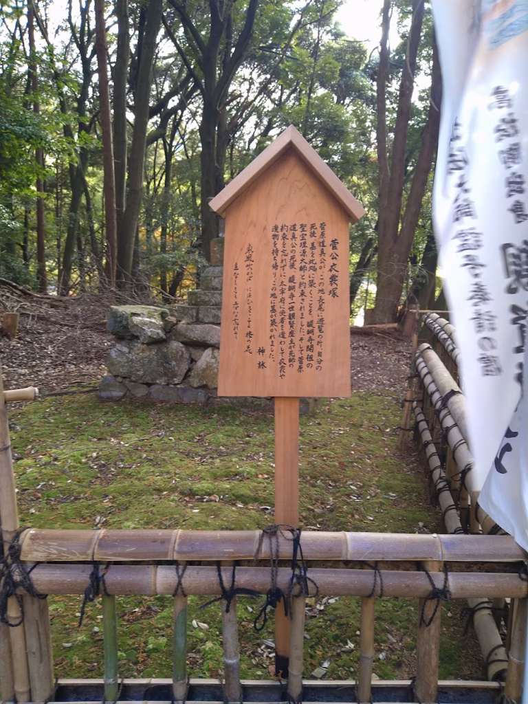 菅原道真公がこの地に遊覧の折、死後はここに墓地を築くことを、醍醐寺開祖の聖宝理源大師と約束を交わされた。そして菅公の死後、醍醐寺一世勧賢座主が、太宰府から衣裳や遺物を持ち帰り、埋めたと伝えられています。