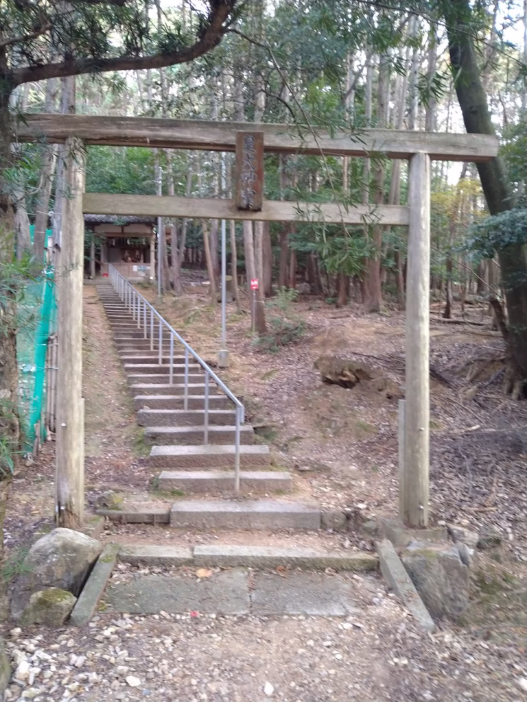 ちょっと見逃してしまいそうになりますが石段の先に鳥居があってさらに上に登ると皇大神宮があります。