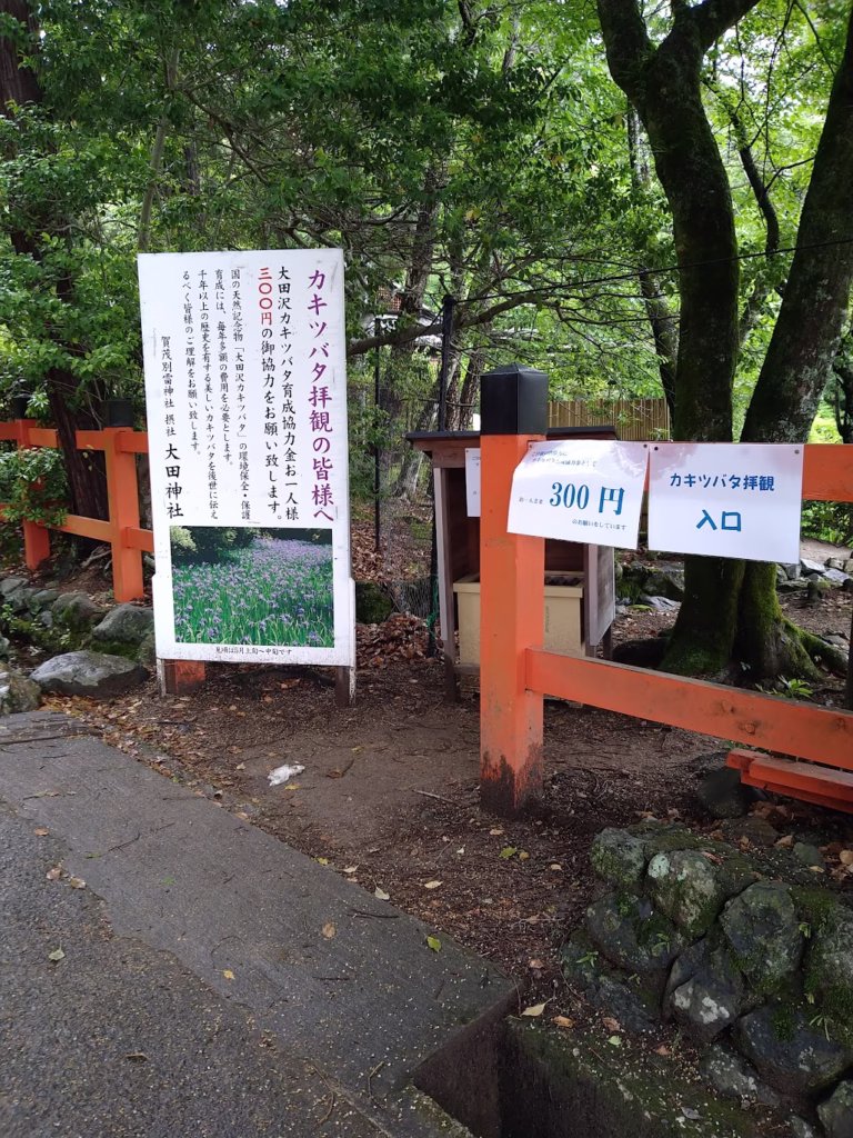 大田神社(おおたじんじゃ)は京都市北区上賀茂本山に位置する古社で上賀茂神社の摂社です。延喜式神名帳に記載され恩多社とも呼ばれています。天女命(あめのうずめのみこと)が御祭神で天岩戸開きの際に神楽を舞った神様として有名です。その御神徳を慕って芸能上達を願い参拝される方が多いです。賀茂に於ける最古の社であり、鎮座年代は不詳で上賀茂神社より古いとされています。賀茂県主族の移住以前より農民から長寿福の神として信仰されていました。境内東側の沢地を大田の沢(おおたのさわ)には国指定天然記念物である野生のカキツバタの群生地があり5月中旬には濃紫色の花が見頃を迎えます。