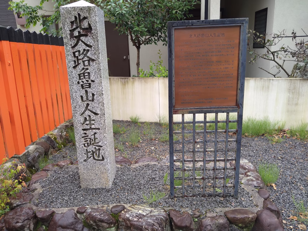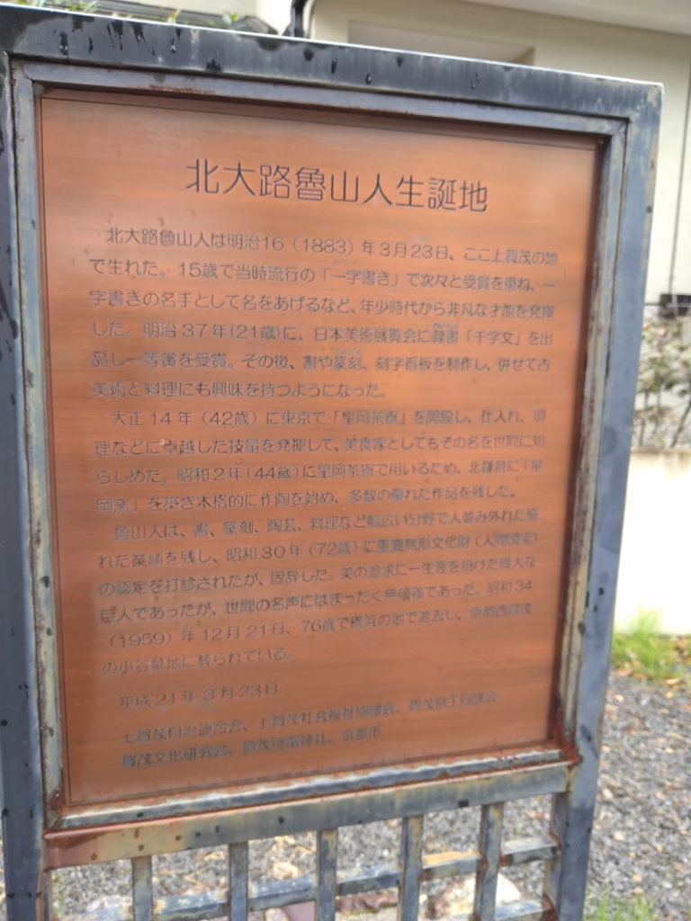 神社とは関係ないんですが、大田の小径を下った先に北大路魯山人生誕地の石碑がありました。