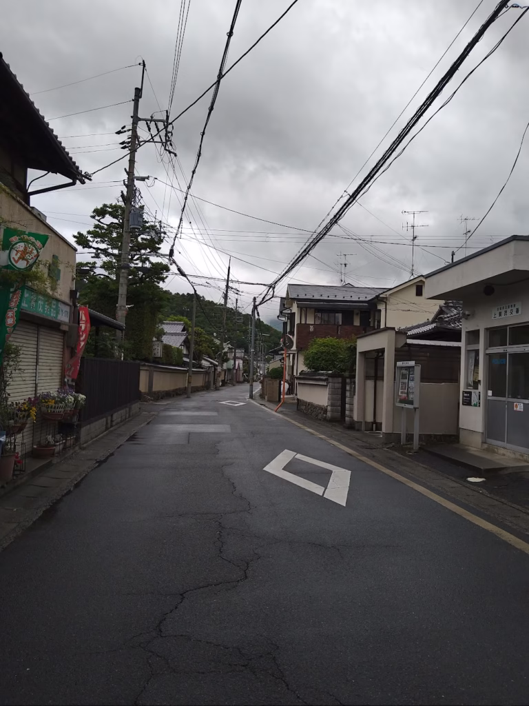 やきもち屋さんの前の道を東方面へ歩いていきます。