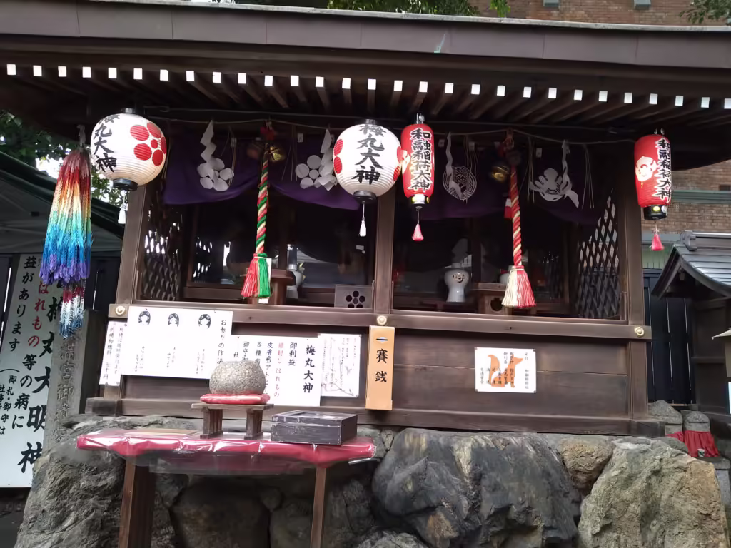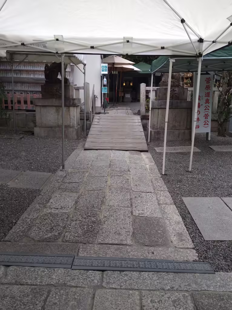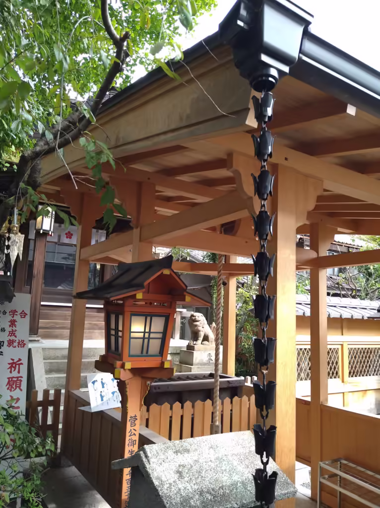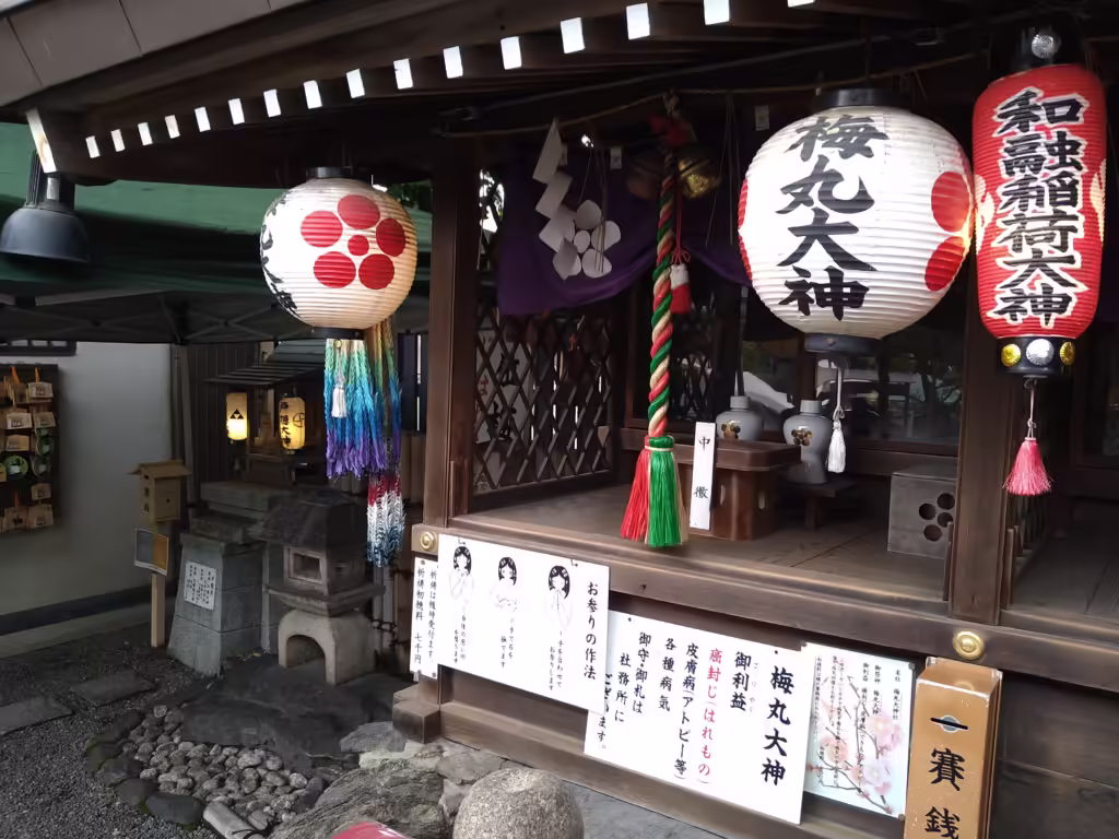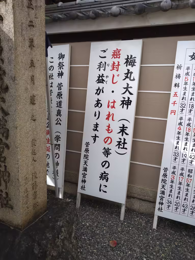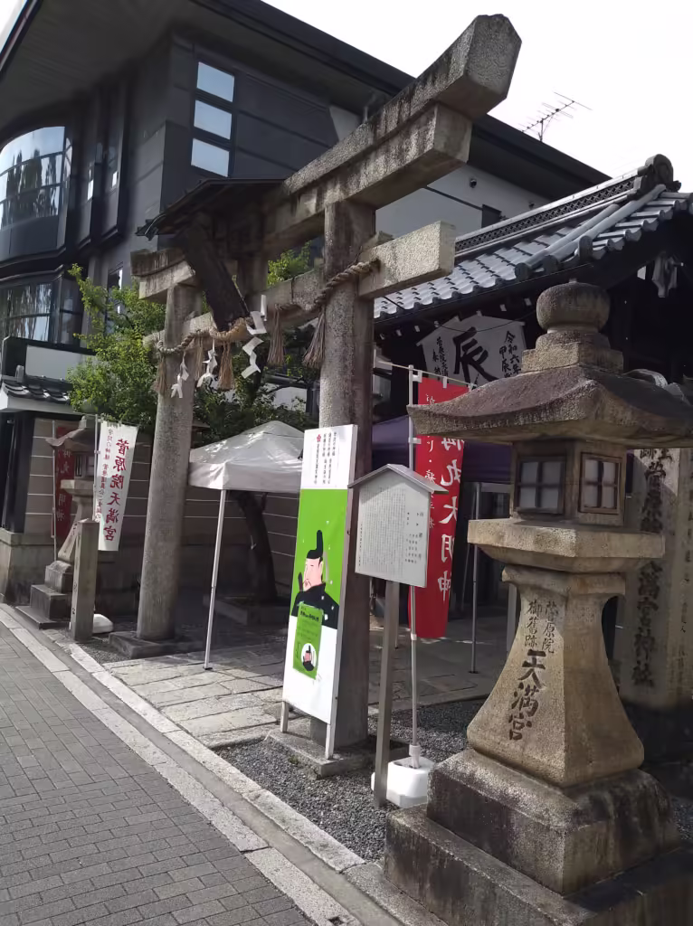 境内にはガン封じの石や、道真公の産湯井戸があり小さな敷地の神社ながら多くの参拝者が訪れます。また菅公聖蹟二十五拝の第1番札所としても知られています。