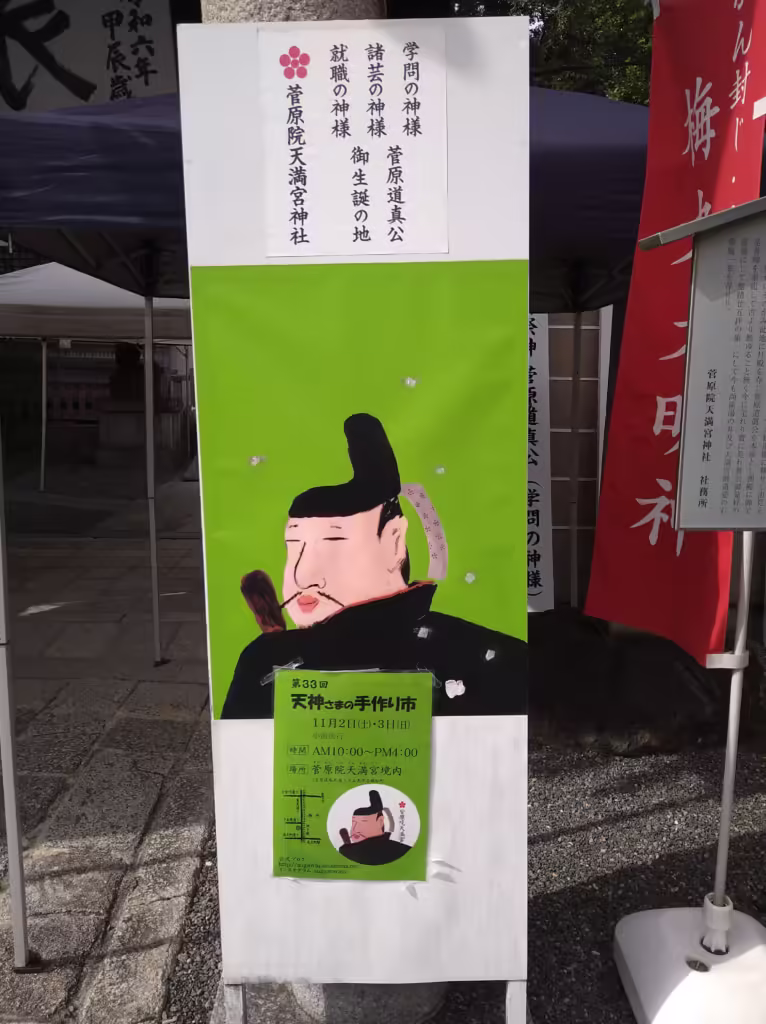 天神さまの手作り市の前に参拝したのでいつもと神社の様子が違います。第33回って書いてあるから長い間手づくり市をされているんですね。