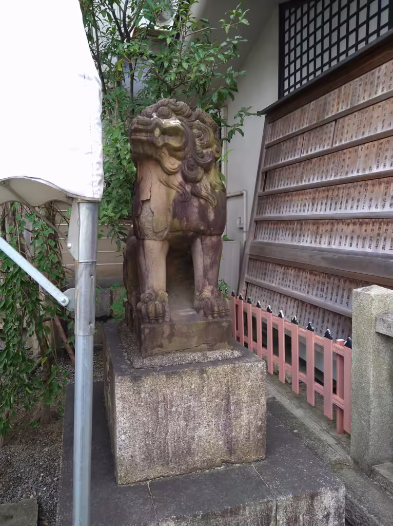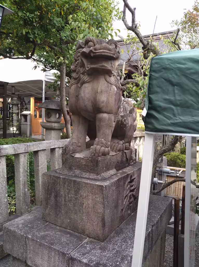 天神さまの手作り市のためと思われるテントが境内には張られていました。かろうじて狛犬さんが見えます。