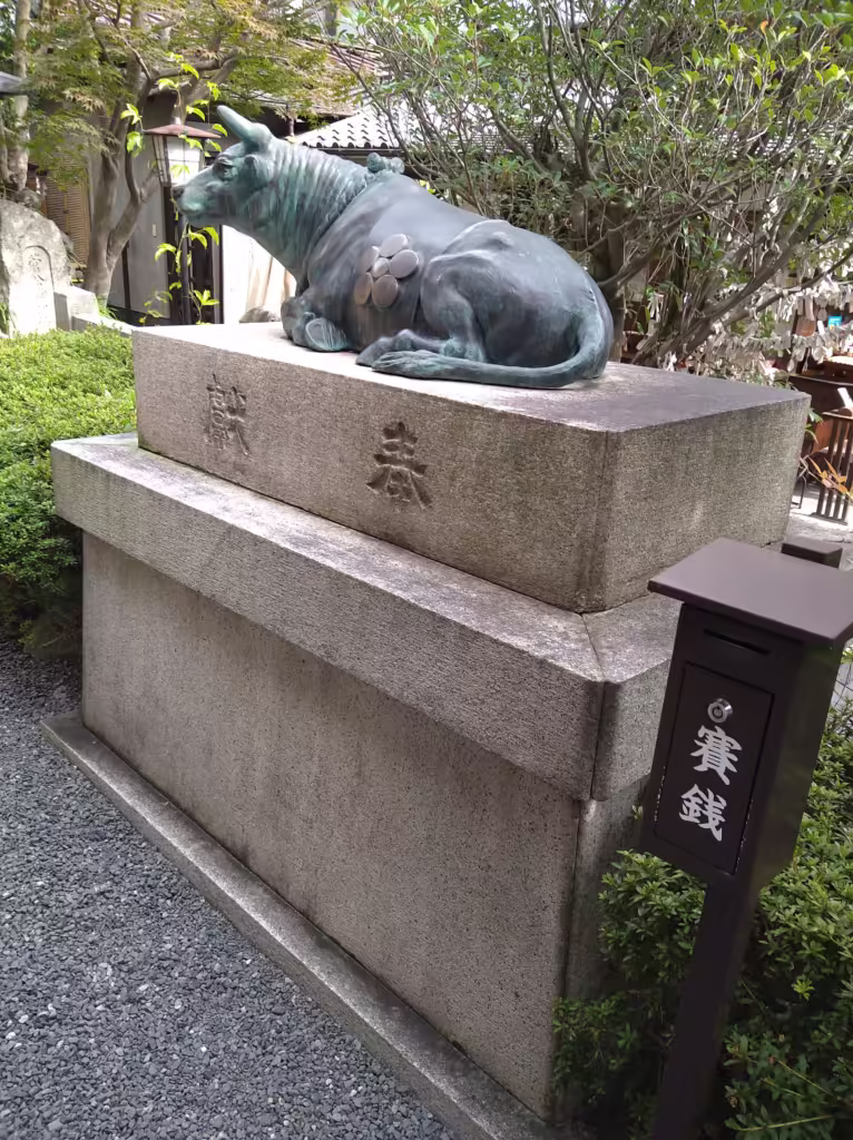 こちらにも牛の銅像があります。京都だと錦天満宮、北野天満宮、長岡天満宮も牛の像がありました。レアなとこだと御香宮神社の境内に桃山天満宮がありました。